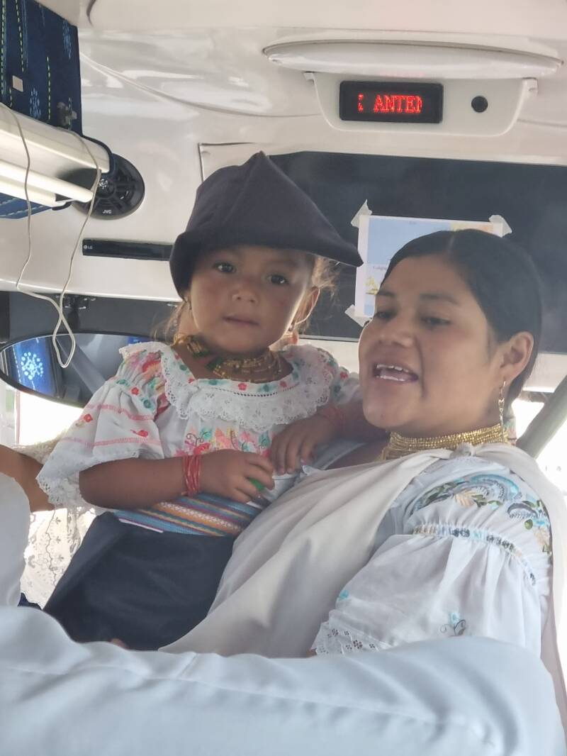 Um 8.30 Uhr treffen wir uns am Bus, wo eine Überraschung auf uns wartet. Unsere Reisebegleitung Jessica hat Kichwa-Frauen organisiert, die uns ein Stück im Bus begleiten, wo sie uns ihre Trachten erklären und typische Lieder der Volksgruppe zum besten geben. Ganz entspannt geht es weiter zum Cotacachi Nationalpark.