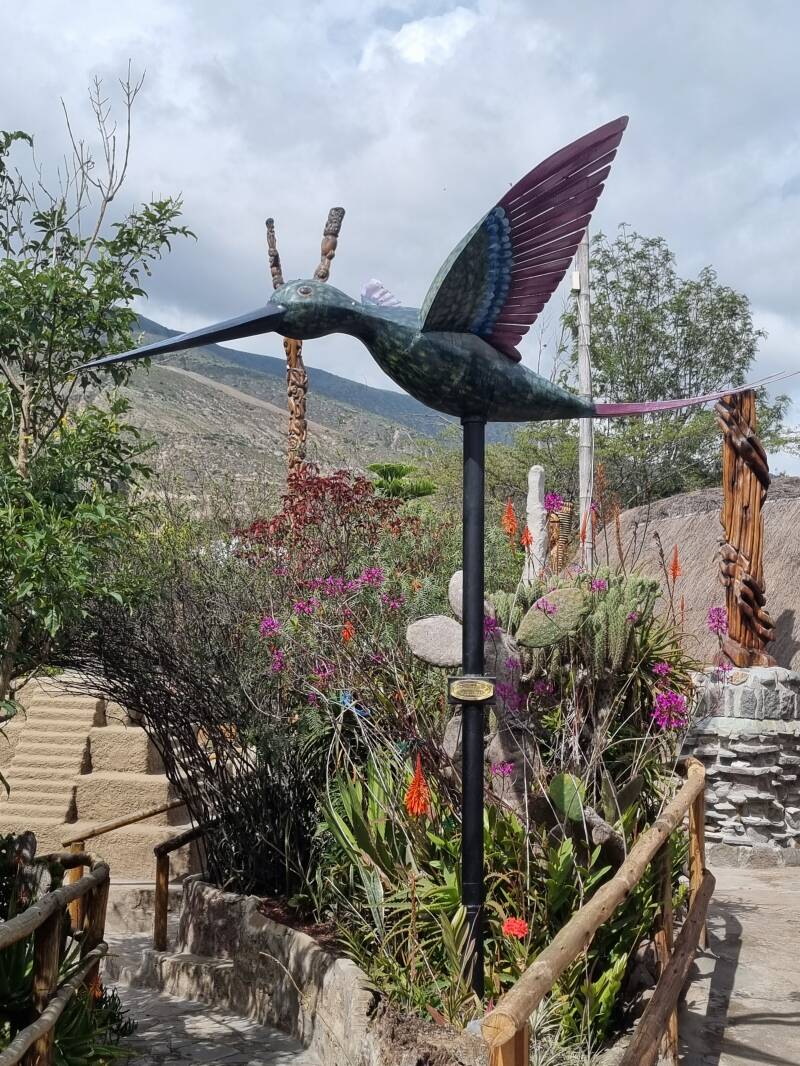 Nach dem Frühstück brechen wir auf in Richtung Otavalo, an "Mitad del Mundo", dem Informationszentrum am Äquator, legen wir einen Zwischenstopp ein. Das Informationszentrum besteht im Grunde aus zwei Teilen, zum einen aus einer Art Völker- und Naturkundemuseum, in dem neben den Eigeneiten der größeren ecuadorianischen Volksstämme auch auf Flora und Fauna des Landes eingegangen wird, sowie auf ein paar kuriose Eigenheiten, die nur am Äquator stattfinden, wie z.B. der Wegfall der Corrioliskraft genau auf dem Äquator.