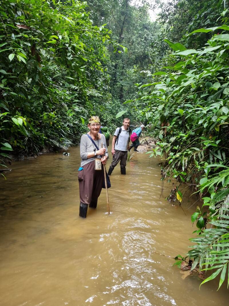 Wir stapfen entlang eines kleinen Bachs durch tiefen Matsch, froh um unsere Gummistiefel. Nach drei Stunden kehren wir verdreckt, verschwitzt aber rundum glücklich zur Lodge zurück.