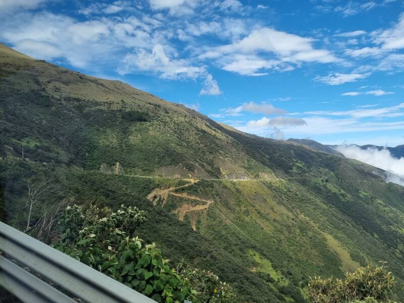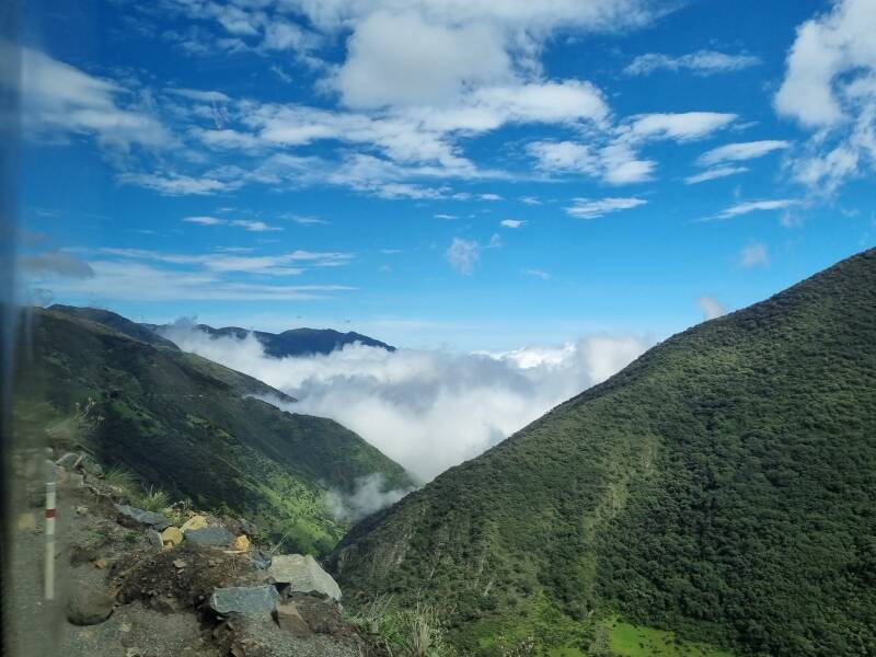 Nach dem Frühstück starten wir zeitig um 9:00 Uhr, um nach Guayaquil zu fahren. Die Route führt uns wieder durch die Anden, entlang wunderschöner Landschaft, teils über den Wolken. Wir erklimmen noch einen letzten Pass, der über 4.000 Metern liegt, um dann innerhalb von nur zwei Stunden auf Meereshöhe ins Tiefland hinunterzufahren. Dort wechseln sich Kakao- und Bananenplantagen mit großen Reisfeldern ab, Temperatur und Luftfeuchtigkeit steigen merklich.