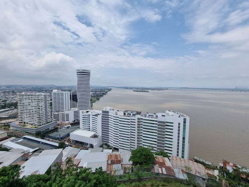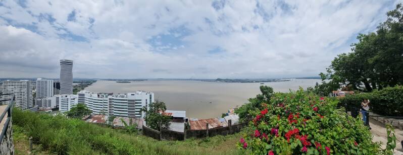 Oben angekommen, wird man mit einem tollen Rundumblick über ganz Guayaquil belohnt. Die letzten 50 Stufen auf den Leuchtturm lohnen sich schon wegen des Windes zum Abkühlen.