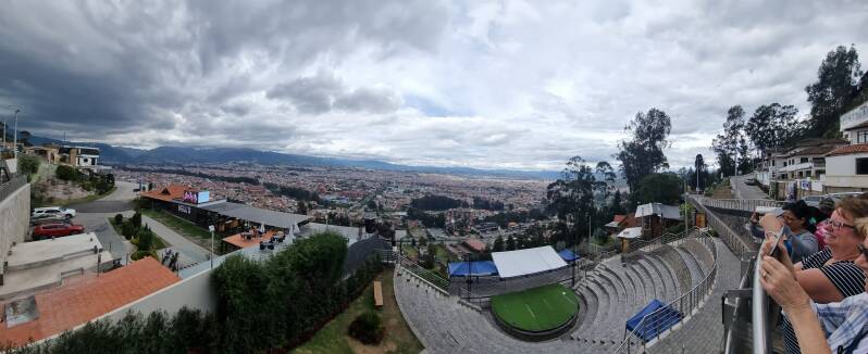 Am Nachmittag fahren wir mit unserem Bus zuerst zu einem Aussichtspunkt hoch über Cuenca, der passenderweise "Turi" heißt und uns einen herrlichen Panoramabilck über Cuenca bietet.