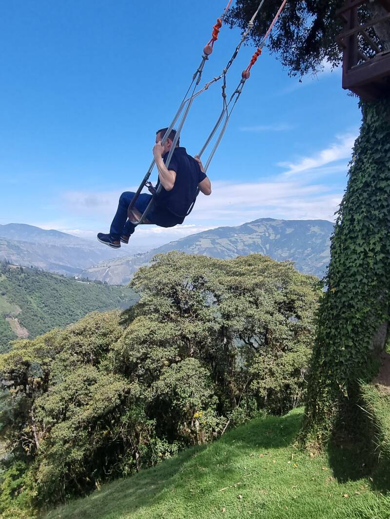 Eigentlich haben unsere Reiseleiterin Jessica und Edgar, unser Busfahrer, heute frei und wir könnten Baños auf eigene Faust erkunden. Sie laden uns aber ein, mit Ihnen zu dem bekannten Aussichtspunkt "Casa del Arbol" in den Bergen über Baños zu fahren. Der kleine Naturpark mit einer beeindruckenden Flora lädt zum Bummeln ein und präsentiert herrliche Panoramen. Außerdem gibt es die Möglichkeit, mit der höchsten Schaukel der Anden über dem Abgrund zu schwingen.
